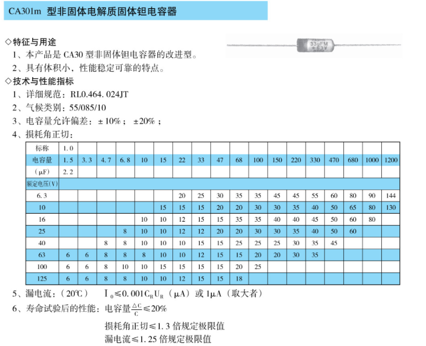 CA301m型非固体电解质固定钽电容器
