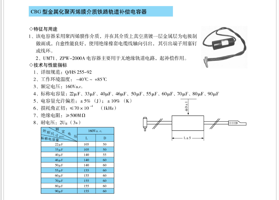 CBG型金属化聚丙烯膜介质铁路轨道补偿电容器