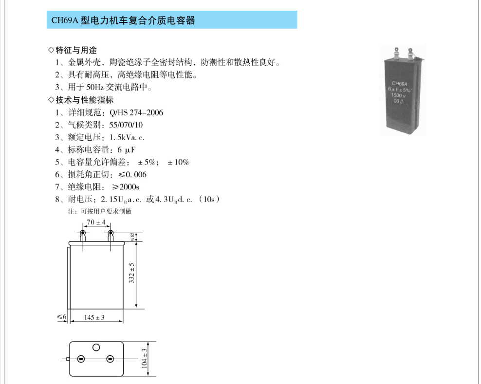 CH69A型电力机车复合介质电容器